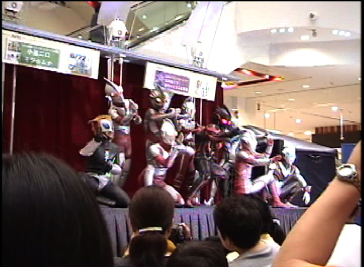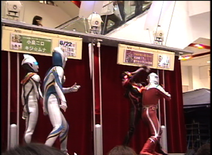 ここで、会場の小さいお友達たちをステージにあげて逃げるエキストラという設定でメビウスと遊びます。ほんとに可愛い…ほのぼの〜。