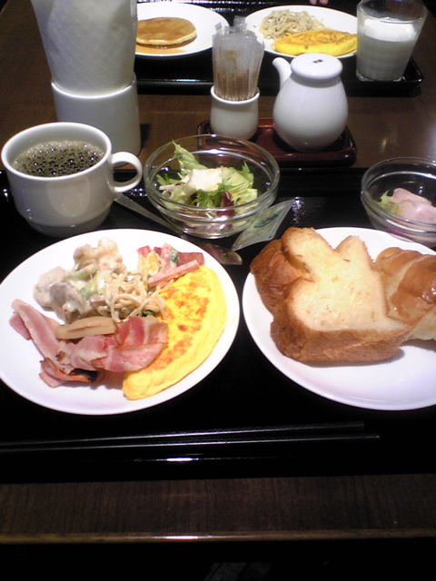 ここのホテルはほとんどが間接照明なのですが、照明がほとんど下からあたるので花粉症でお肌がボロボロだった私にはイヤな現実が鏡にクッキリと(泣) 雰囲気も大事だけど、女性にうれしい照明もいいんじゃないかなぁ…。あとベッドは良かったんですが、羽毛布団がすごく暑くて足出しながら寝ると寒いし…。私は羊毛がいいな。
