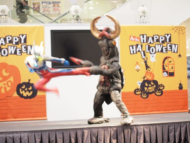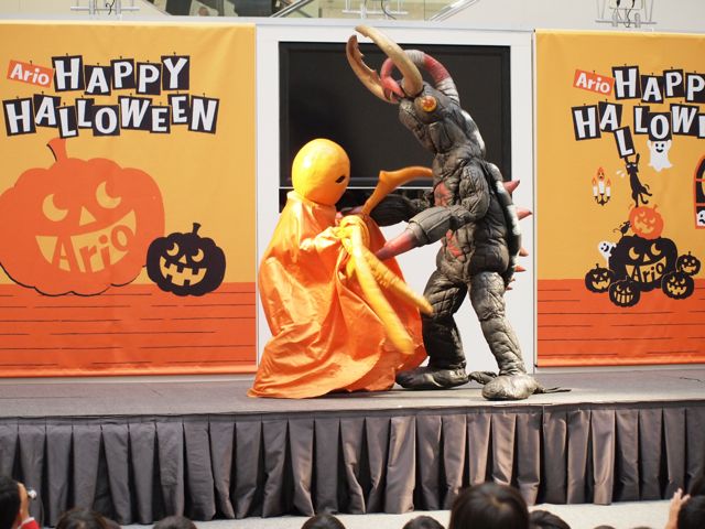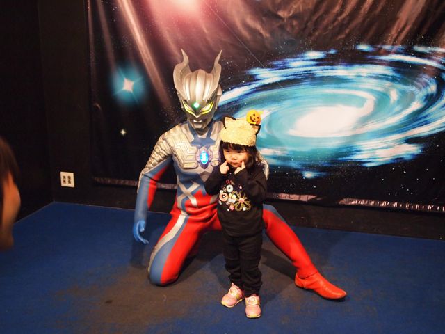 ハロウィンパレードに参加できるのは「ウルトラシリーズにちなんだ仮装」という事だったので、マグロリちゃん帽もまだ被れるしコレでいくしかない!と背中に惑星のコアをも破壊できるというマグマ勲章をつけてみました♪