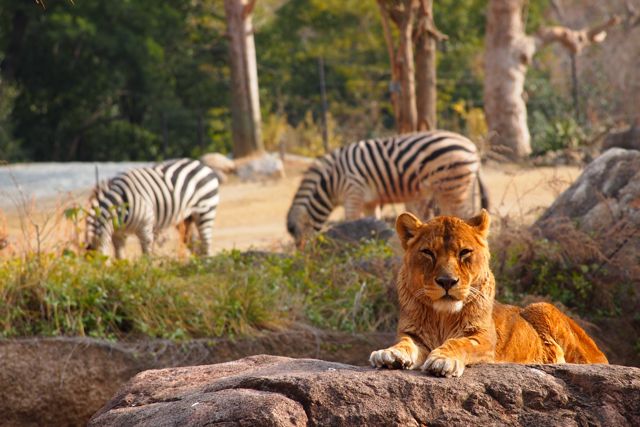 行動展示の工事もかなり進んでいて、ライオン舎からサバンナの様子が見えるようになっていました。