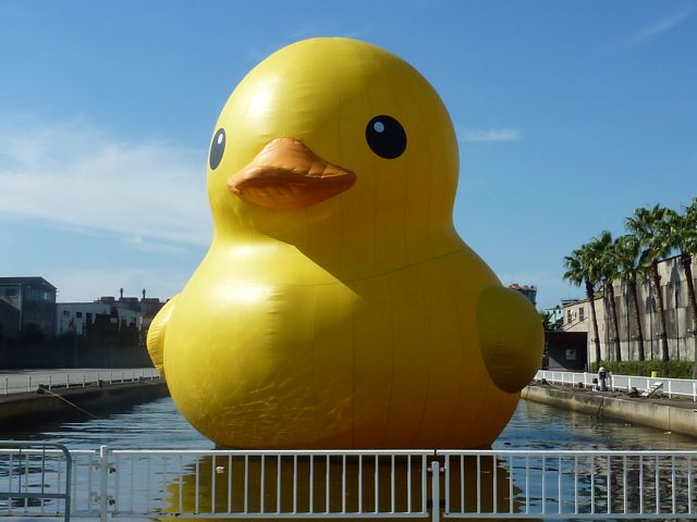 前日の雨で開始時間が遅れたため、娘の出る競技が一つ減っちゃったので、あいた時間に10月1日から3日までの限定公開のあのあひるちゃんに会いに北加賀屋まで行ってきました♪