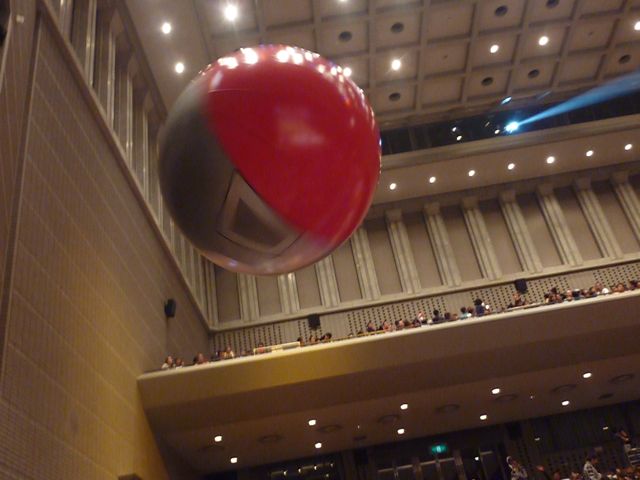 プリズムホールの中を大きな風船がポーンポーン。